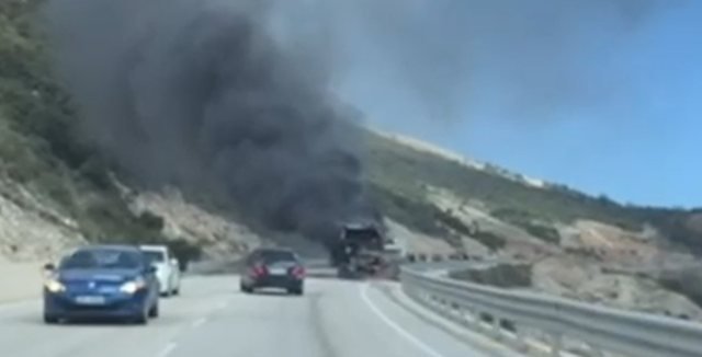 Delvinë, April 5, 2025 – A passenger bus on the Sarandë-Tirana line caught fire while in motion near the Skërficë tunnel in Delvinë, causing panic among the passengers.