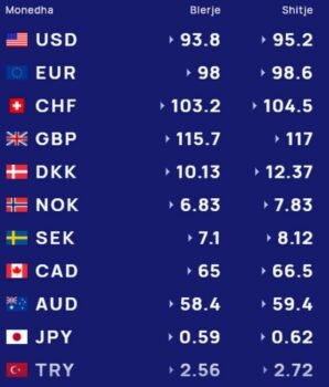 Euro sot blihet me 98 lekë, ndërsa në shitje me 98.6 lekë.