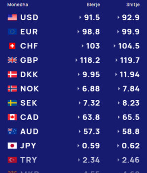 Dollari amerikan blihet me 91.5 lekë, ndërsa shitet me 92.9 lekë.