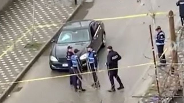 Policia ka rrethuar një automjet që ka dëmtim në xhamin e parë dhe po kryhen verifikime nëse ka dëmtim nga plumbi apo sende të tjera.