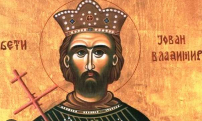 Shenjtori ka lindur në shek. X dhe ishte bir i Nemanit dhe nipi i mbretit Bullgar Simeoni i Ohrit (890 – 927). Nemani, i ati ishte mbreti i Ilirisë dhe sundonte Malin e Zi, Dalmacinë, Bosnjen dhe disa krahina të Greqisë pranë Prevezës. Mbas vdekjes së të atit, mbretërinë e trashëgoi Vladimiri. Ai dallohej si një mbret shumë besimtar me moral të lartë, bamirës dhe paqësor. U interesua për përhapjen e besimit orthodhoks tek shtetasit e tij, mbrojti Kishën nga herezia (bogomilëve) ndërtoi kisha, manastire dhe institucione bamirësie. Në një betejë me Samoilin, mbretin e Bullgarisë u zu rob prej tij dhe u burgos në kryeqytetin e Ohrit. Atje njihet nga princesha Kozara, bija e carit Samoil, e cila admiron bukurinë dhe mirësinë e Vladimirit. Ajo i kërkon të atit martesën me Vladimirin. Samoili pranoi dhe e dërgoi Joanin përsëri në mbretërinë e tij të mëparshme. Me vdekjen e car Samuelit mbretërinë e tij e mori i biri, Radovan, por ai u vra nga kushëriri i tij, Vladisllavi një njeri i pashpirt dhe lakmitar. Mbasi mori mbretërinë e Bullgarisë ai kërkonte t’i merrte mbretërinë dhe Joan Vladimirit dhe për ta gënjyer shenjtorin i dërgoi një kryq si shenjë besnikërie. Vladimiri në mirëbesim shkoi në oborrin e Vladisllavit në Ohër, ai kërkoi t’i presë kokën me shpatë Joanit, por nuk mundi. Atëherë mbreti Joan i tha: “Me kryqin që më tradhëtove mund të ma presësh kokën”- duke iu thënë shoqëruesve të tij, mos u hakmerrni, mos derdhni gjak për mua”. Le te jetë flija ime për paqen midis popullit!”