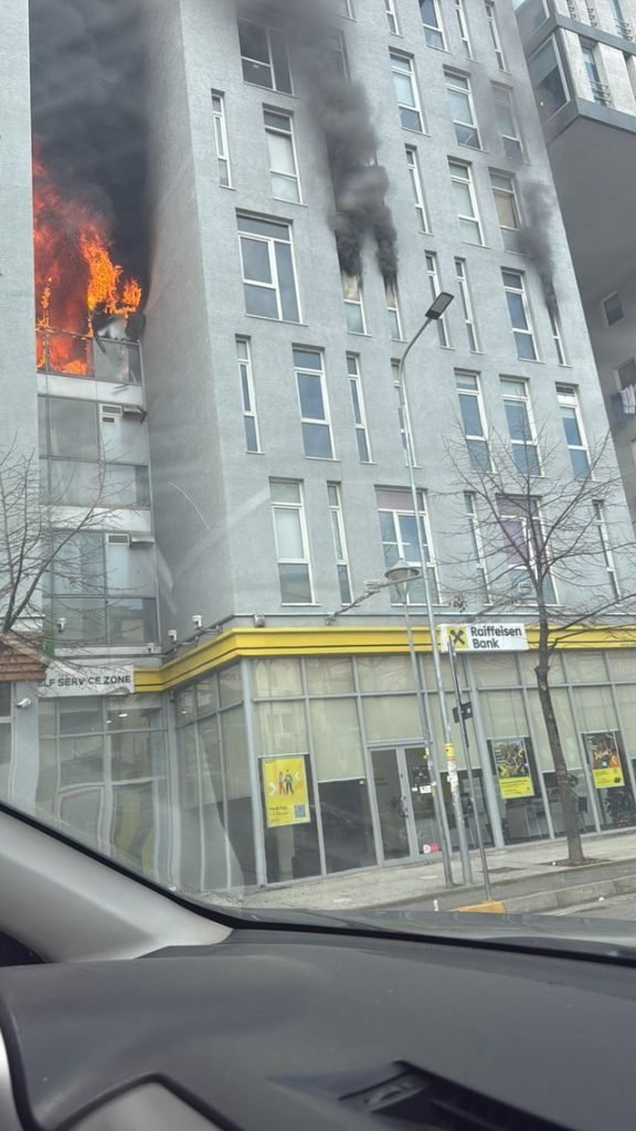Një filial i “Raiffeisen Bank” është përfshirë nga flakët ditën e sotme.
