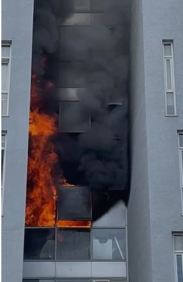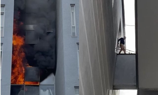 Të tjerët kanë braktisur ndërtesën me urgjencë, ndërsa të tjerë, siç shihet edhe një i ri në video, tentojnë të shpëtojnë duke kaluar nga “ura” që lidh dy godinat e kompleksit.